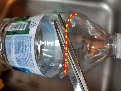 병에 붙은 스티커를 제거하기 위해서는 페트병이 필요합니다. 페트병은 윗부분을 자른 뒤 준비해 주세요.