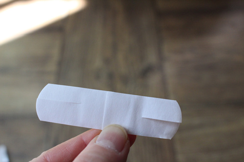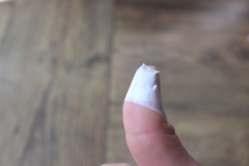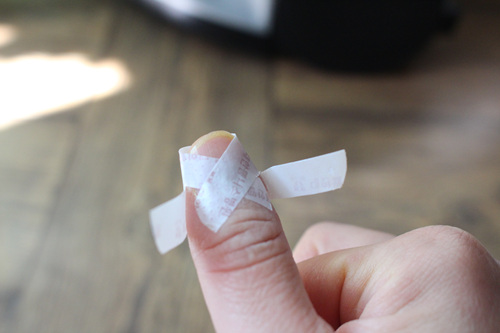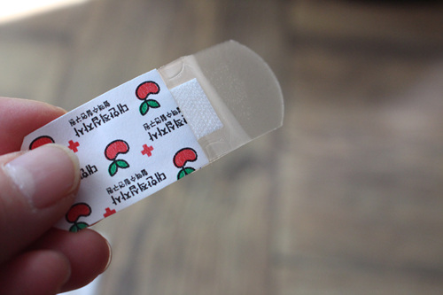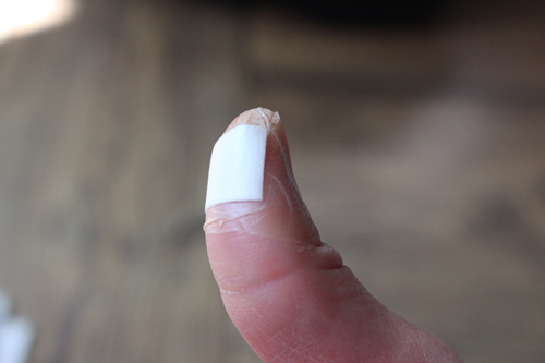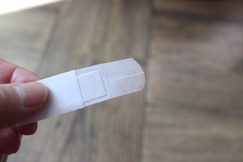하지만 일반 대일밴드는 손가락을 움직일 경우 잘 떨어지기 때문에 붙이기 전에 위의 사진처럼 가위로 양 옆을 잘라 주어여 합니다.