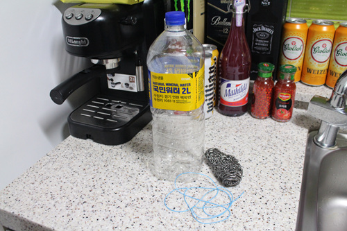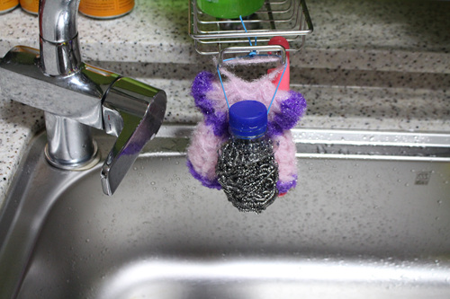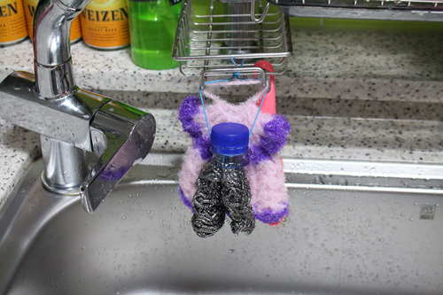 페트병으로 철수세미 손잡이를 만들어 놓으니 손 다칠 염려 없고 고무장갑이 찢어지는 일은 없을 듯 합니다.