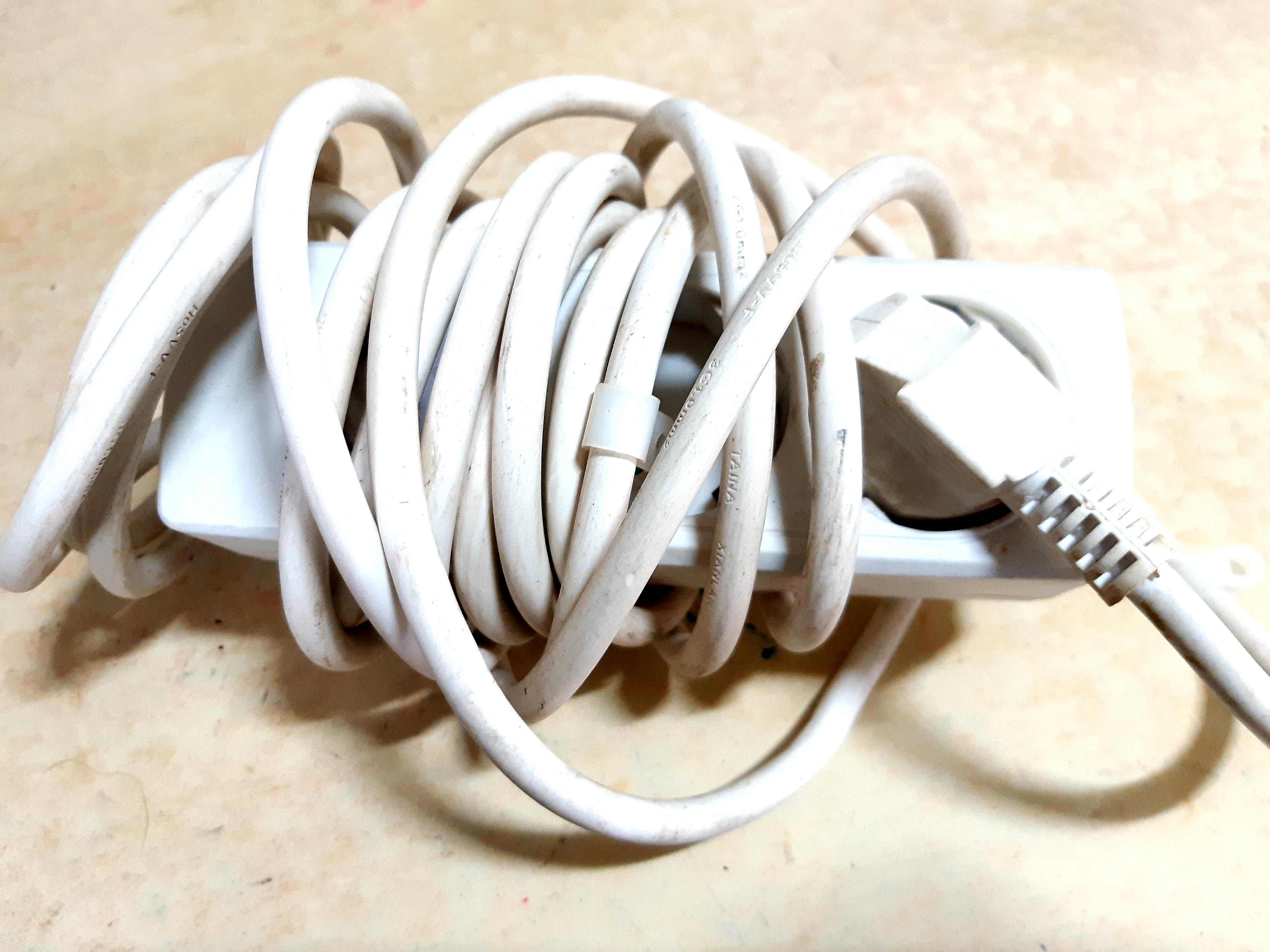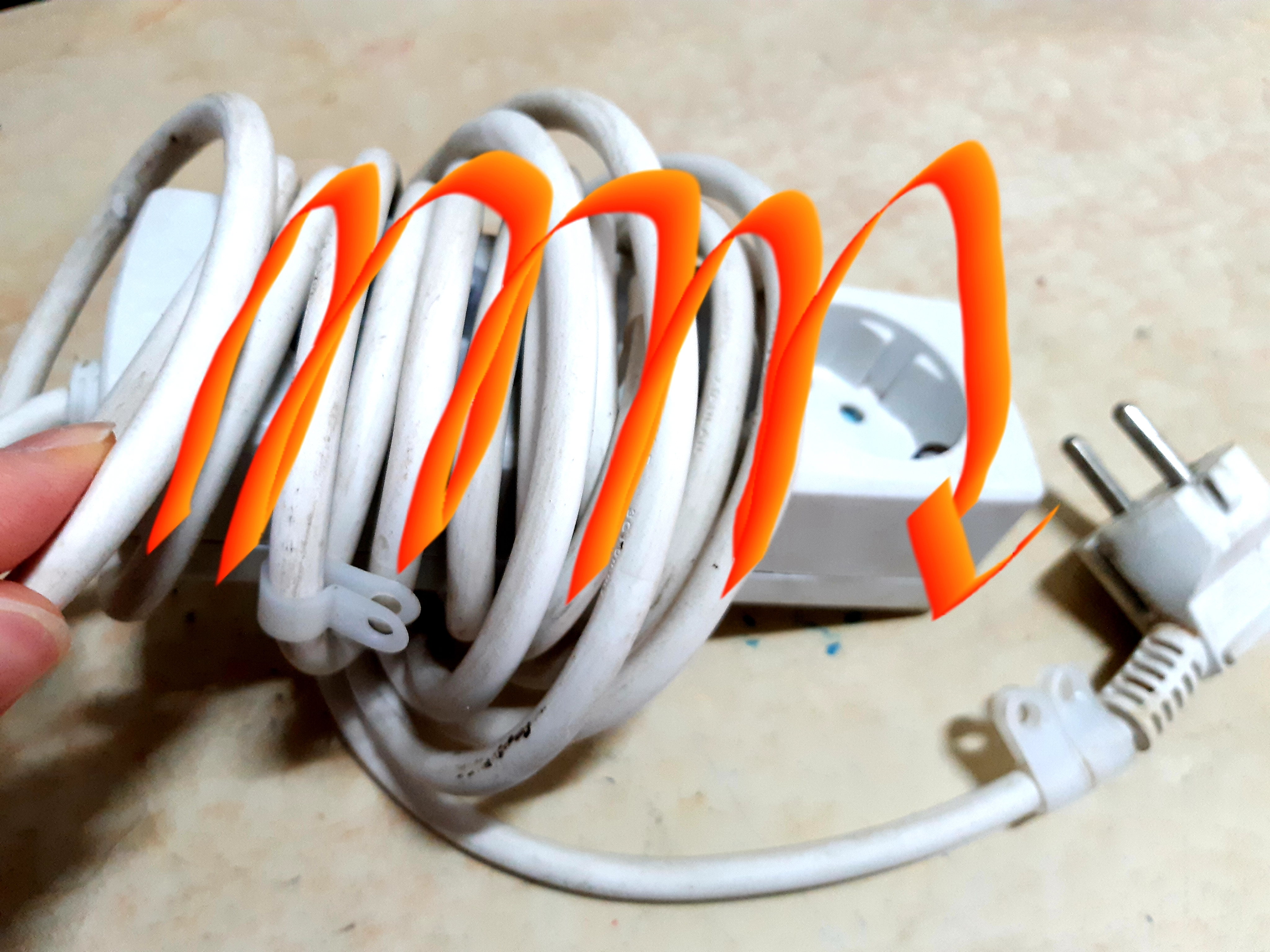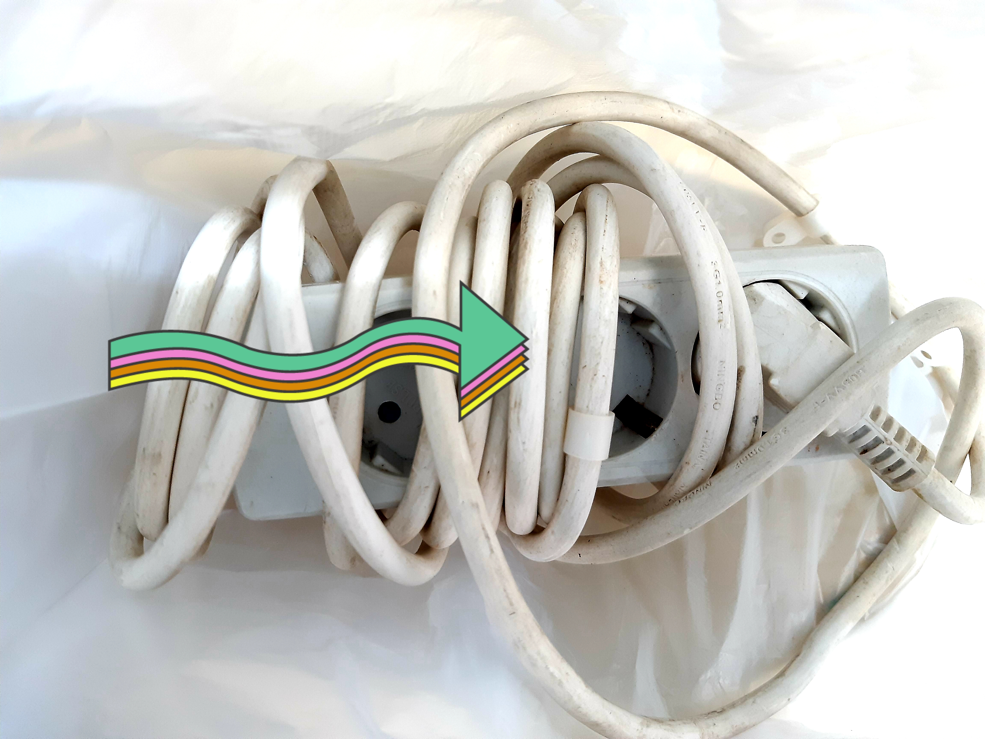 멀티콘센트 선을 돌돌 말아서 정리한 후 코드를 콘센트에 끼워 넣으면 간단히 해결 됩니다.