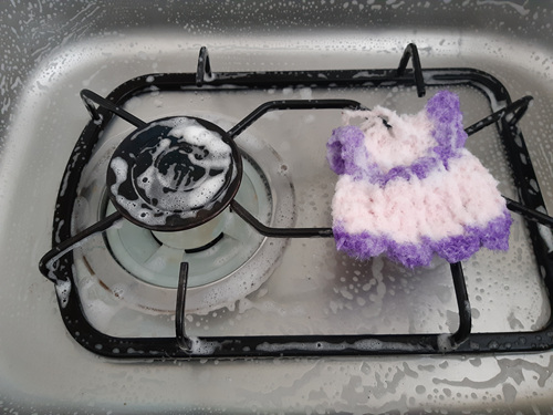 나머지 가스렌지 부속은 주방세제 약간 묻혀서 부드러운 수세미로 잘 닦아 주세요.