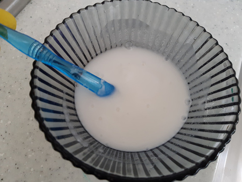 제일 먼저 베이킹소다와 식초를 섞어서 걸죽하게 겔처럼 만들어 주세요.