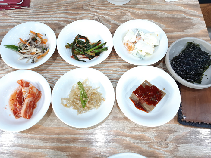 순두부와 돌솥밥의 조화에 이어 반찬 수도 7가지가 나옵니다. 날마다 매일 똑 같지는 않다고 하는데 3가지 빼고 나머지는 달랐던 기억이 있네요. 하여간 맛도 괜찮아 리필을 자주해도 친절하게 응대해서 좋았습니다.