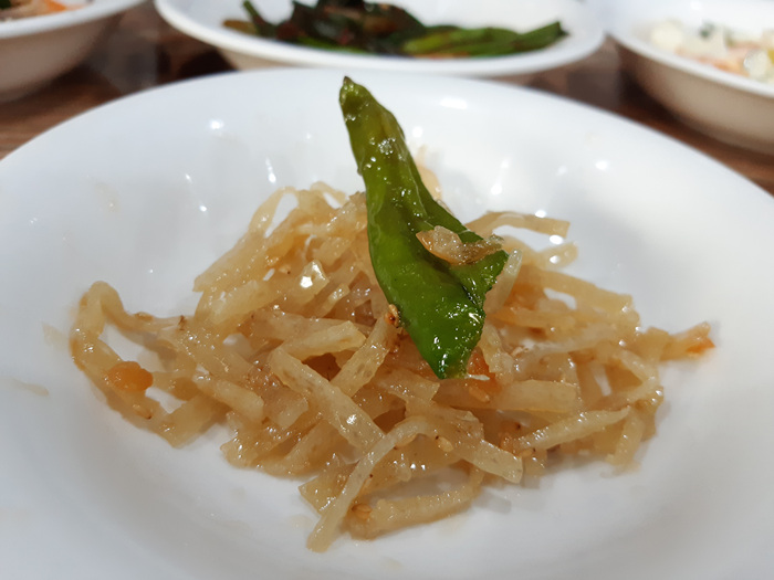 순두부와 돌솥밥의 조화에 이어 반찬 수도 7가지가 나옵니다. 날마다 매일 똑 같지는 않다고 하는데 3가지 빼고 나머지는 달랐던 기억이 있네요. 하여간 맛도 괜찮아 리필을 자주해도 친절하게 응대해서 좋았습니다.