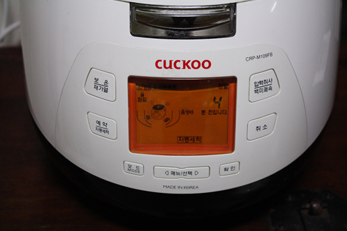 쿠쿠에는 자동세척 메뉴가 따로 있으니 거길 눌러서 세척을 하면 됩니다. 만약 자동세척 메뉴가 없는 일반 밥솥일 경우엔 취사를 눌러 하시면 됩니다.