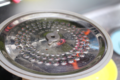 밥솥을 뒤집어 보시면 철사 같은 것이 보이는데요. 이것은 압력추가 막혔을때 뚫어주는 것입니다.