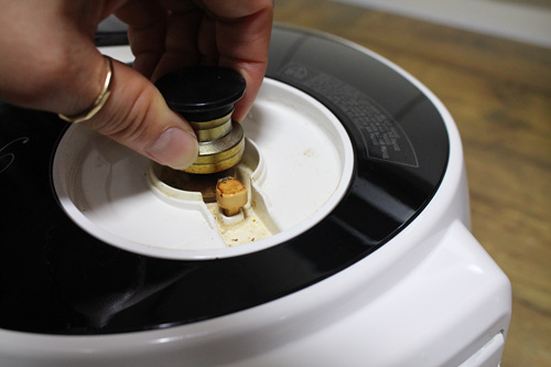 압력추가 있는 주위도 청소할 곳인데요. 손으로 돌리면 쉽게 제거되니 밥솥 청소를 할때 이곳도 필수로 해 줘야 합니다.