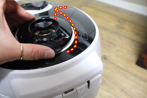 압력추가 있는 주위도 청소할 곳인데요. 손으로 돌리면 쉽게 제거되니 밥솥 청소를 할때 이곳도 필수로 해 줘야 합니다.