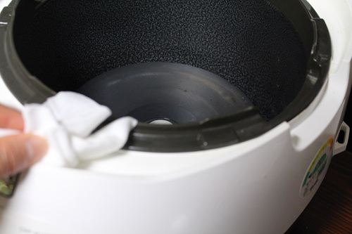 이젠 밥솥 곳곳을 닦아 주세요. 때가 많다면 물티슈로 한 번 닦아 주고 행주로 닦으면 깨끗해집니다.