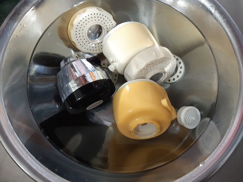 이렇게 담근 수전은 약 1시간 정도 그냥 방치해 주세요.