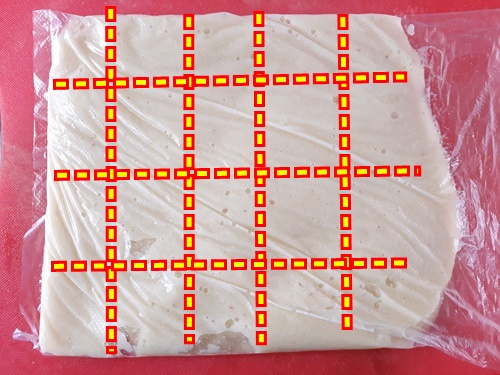 잘 갈아 놓은 마늘은 1회용 비닐봉지에 넣어 그림처럼 자국을 내어 주세요.