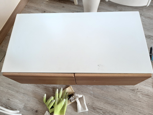 에프킬라를 이용해 가구 전반적으로 깨끗이 만들거예요. 흰 가구라 잘 지워지지 않는 얼룩도 문제없습니다.