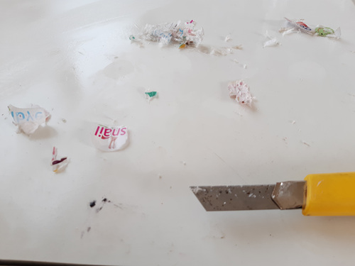 3분 동안 에프킬라로 불려진 스티커를 칼을 이용해 긁어서 제거해 주세요. 생각보다 너무 쉽게 제거되어 순식간에 지저분했던 부분이 깨끗해집니다.