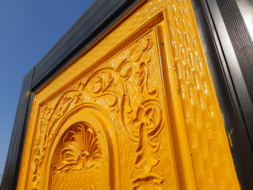 바람이 좀 잠잠해질 즈음....... 락카를 이용해 대문에 색을 입혔습니다.