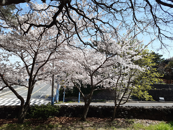 매일 지나가는 도로.... 이 곳 건너편 도로에서 매일 봤던 벚꽃을 오늘은 오현단에서 보게 되네요. 건너편 풍경도 은근 매력적입니다.