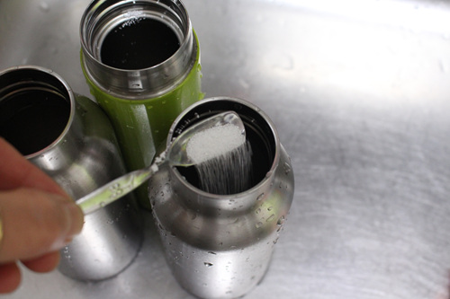 물때가 낀 텀블러에 과탄산소다 1티스푼을 먼저 넣어 주세요.