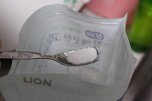 물때가 낀 텀블러에 과탄산소다 1티스푼을 먼저 넣어 주세요.