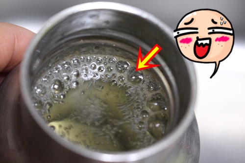 뽀글뽀글 한 뒤 자세히 보면 이런 모습 ..... 물때가 많이 낀 텀블러는 이 보다 더 심하겠죠.