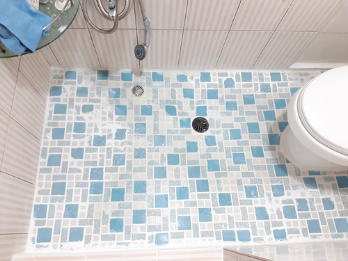 타일에 페인트를 바르고 남은 것을 구멍이 있는 곳이라면 꼼꼼이 다 바르는 남편입니다.