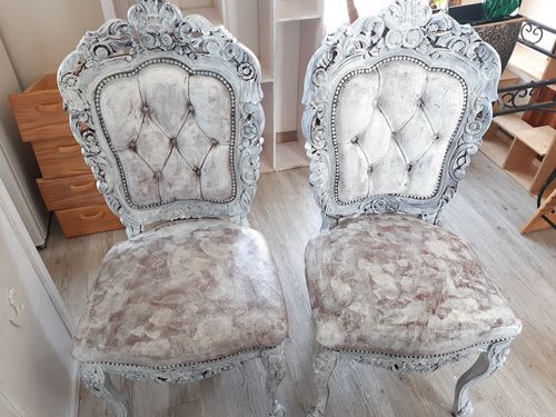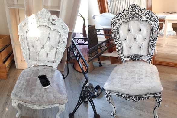 낡은 식탁의자 두개 모두 흰색으로 칠하니 은근 매력적인데요.