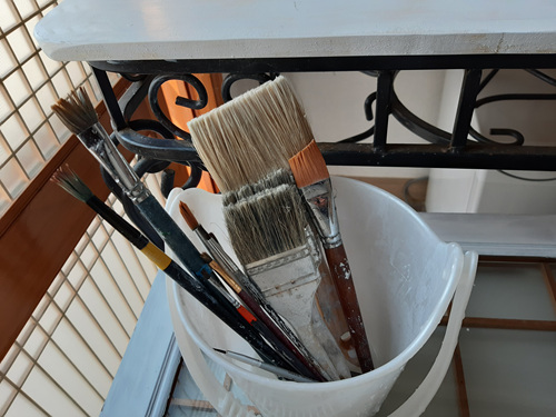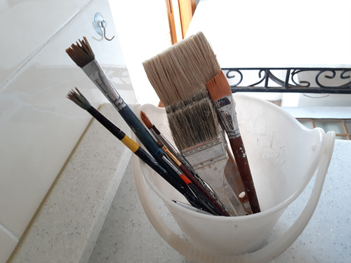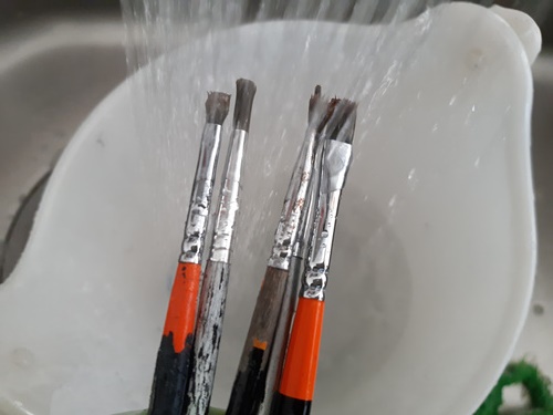 유성페인트로 인해 붓이 뻣뻣했는데 주방세제로 씻어 놓으니 새 붓처럼 솔이 다 부들부들 합니다.