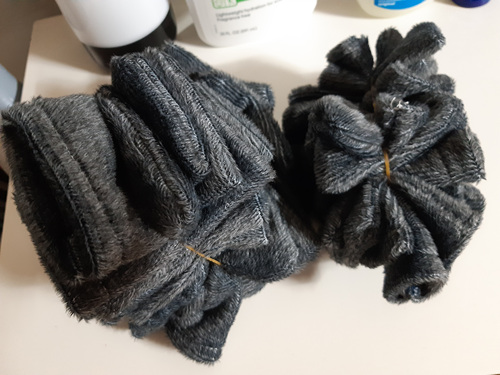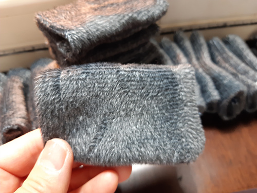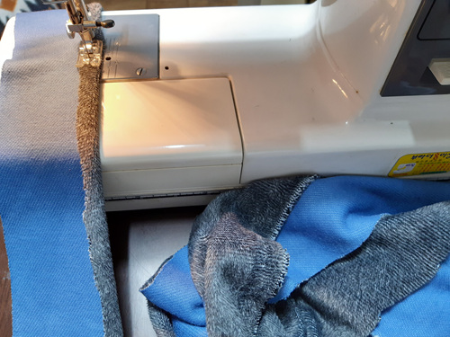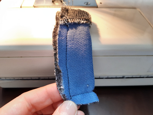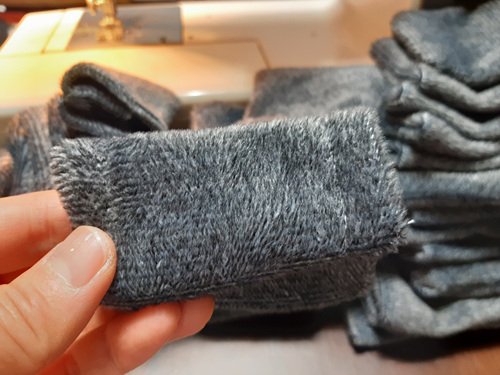 의자 다리가 들어갈 윗부분은 한 번 접어서 박음질을 하고 그 다음 뒤집은 상태에서 박음질을 하면 깔끔하게 의자 다리커버가 완성됩니다.
