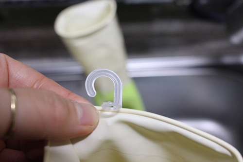 따로 고무장갑에 칼로 구멍을 내지 않아도 쉽게 고정이 되는 고리~
