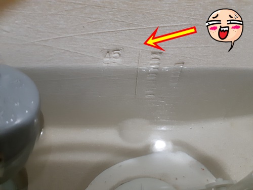지금은 평소 사용하는 정상 물 수위로 조절했습니다. 그 전에 변기물통 안을 청소한다고 점선까지 물 수위로 높였더니 변기물통 뚜껑에 곰팡이가 자연스럽게 생긴 것 같네요. 이젠 절대 물통 청소 후에는 수위조절 잊지 말고 하는걸로...
