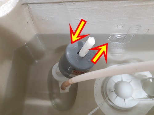 변기물통 내 수위 조절은 집에서 누구나 간단히 할 수 있습니다. 물통 안에 보시면 사진에 보는 것처럼 둥근 부분을 위 아래로 조절이 가능한데요. 아래로 내리면 물 수위가 낮아지고, 위로 올리면 물 수위가 높아집니다.