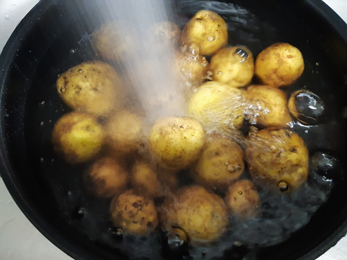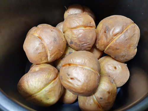 구운 감자의 껍질을 쉽게 벗기기 위해서지요.