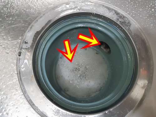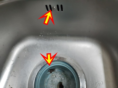 이 물구멍은 싱크대 물이 가득찰때 물이 밖으로 넘치지 않게 안쪽에 뚫린 구멍입니다. 싱크대에 물이 찰랑찰랑 채울 일이 없기에 그냥 늘 방치된 상태였지요. 그렇다 보니 자연스럽게 물때가 쌓이고 쌓여 냄새가 났던 겁니다.