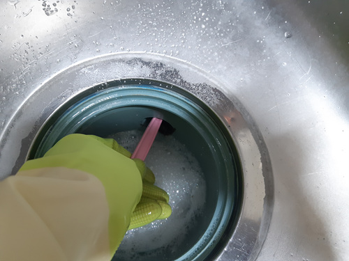 보통 개수대 청소라고 하면 수세미를 넣어 박박 문지르는데요. 사실 설거지용 고무장갑을 착용하고 다시 그곳을 청소하기가 좀 찜찜한 기분이 듭니다.