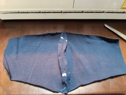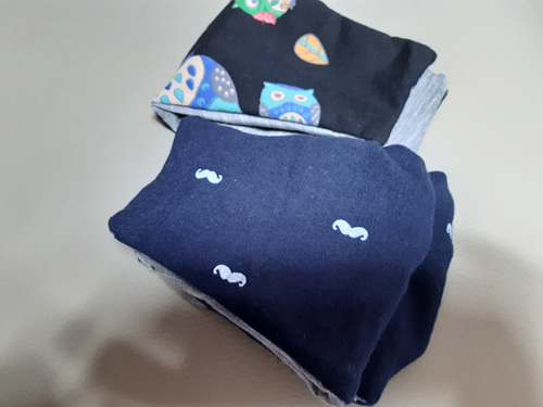 안감과 겉면을 붙여서 박음질 한 뒤 다시 뒤집으면 이런 상태가 됩니다. 마스크 나름대로 비슷하게 만들어진 것 같아 이제 본격적으로 2장 더 만들기로 했어요. 남편꺼랑 스페어로 한 개 더....