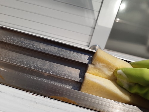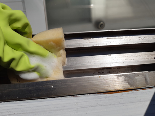 스펀지로 창틀을 닦을때는 한쪽 방향으로 닦아 줍니다.