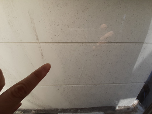 입구에 잘 보이는 곳 창문은 나름대로 때가 많이 나오지 않았는데...