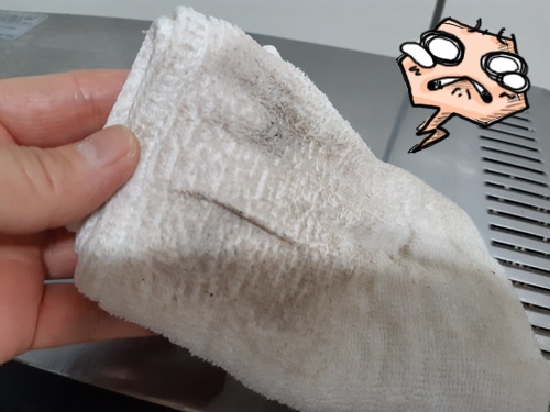 힘을 박박 주지 않아도 나름 잘 닦이는 이 느낌.... 잘 닦이는 만큼 행주는 엉망이 되었습니다.