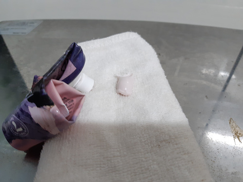 자투리 치약을 다 사용해서 여행갈때 사용했던 1회용 치약을 대체 했어요.