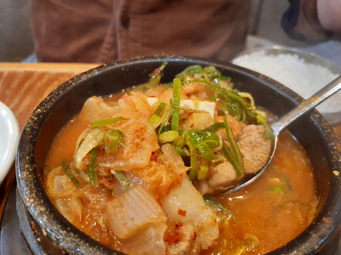 김치째개도 푸짐 그자체...고기가 어찌나 많이 들었는지 몰라요. 김치찌개만으로도 밥 한 그릇 뚝딱 해치울 수 있을 정도니까요.