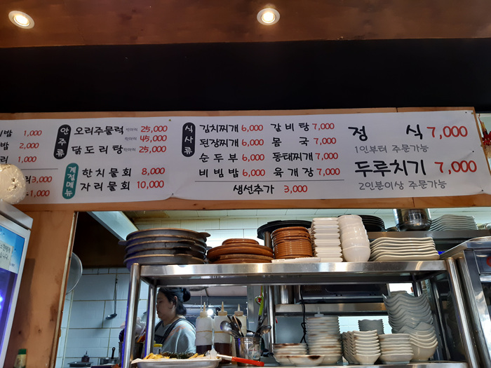 이 집엔 다양한 메뉴가 많지만 거의 90%는 정식을 주문합니다. 그리고 나머지 10%로도 저렴한 찌개류를 주문할 정도로 딱 몇 가지만 많이 나갑니다.