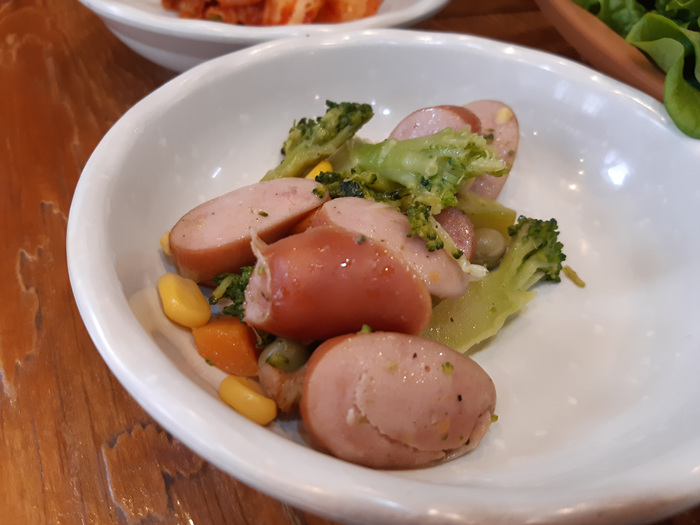 김치째개도 푸짐 그자체...고기가 어찌나 많이 들었는지 몰라요. 김치찌개만으로도 밥 한 그릇 뚝딱 해치울 수 있을 정도니까요.