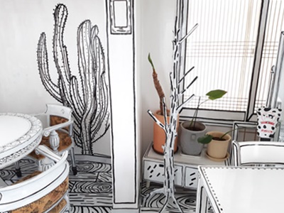 흰색을 칠한 부분에 포인트로 검은색을 칠하니 2D의 효과까지~