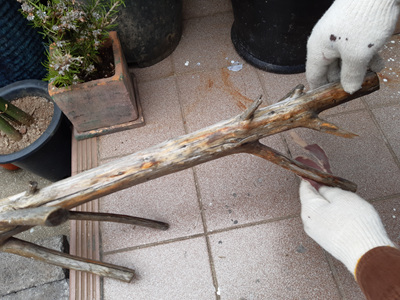 죽어서 버려진 나무 나름대로 모양도 이쁘고 제대로 잘 가꾸면 뭔가 멋진 인테리어용으로 손색이 없을 것 같은 생각에 남편에게 좀 다듬어 달라고 했습니다.