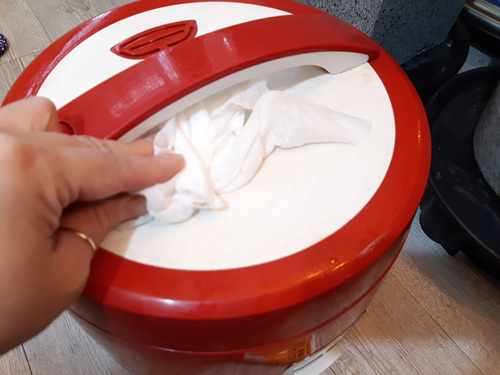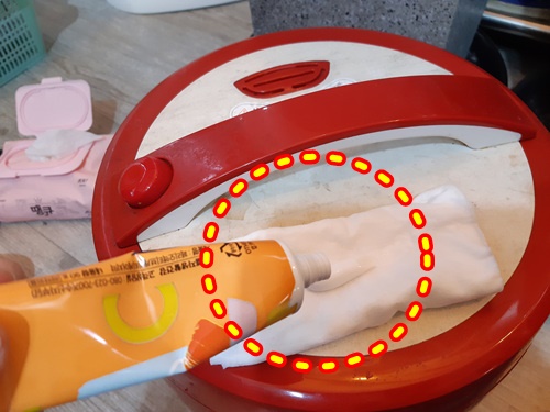 밥솥 안에 분리되지 않는 고무패킹 부분도 꼼꼼히 닦아줬습니다. 이 부분도 잘 지워지지 않는 부분이라 치약을 이용해 닦았습니다. 물론 마무리는 깨끗한 행주로 닦았구요.