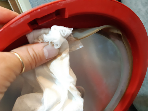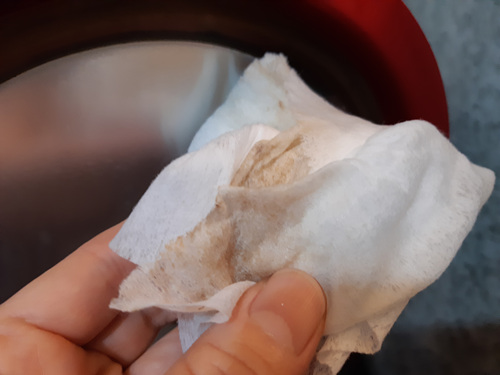 치약으로 한 번 닦은 뒤엔 물티슈로 정리를 해 주는 식으로 닦으면 됩니다. 물티슈에 묻어 나오는 꼬질꼬질한 때도 관건이었죠~ 그래서 전 마무리로 깨끗한 행주로 한 번 더 닦아 줬어요.