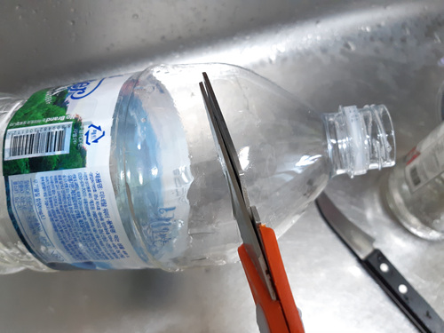병이 들어갈 수 있게 페트병 윗부분을 잘라 주세요.