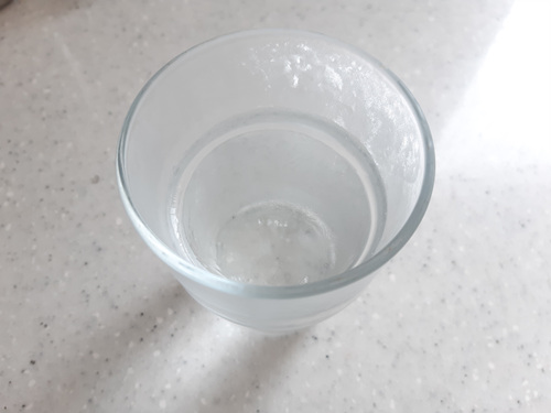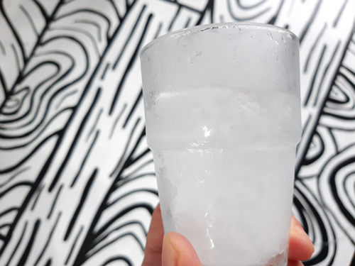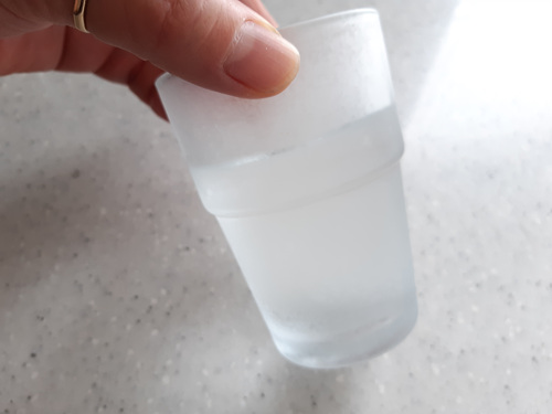 먼저 투명한 컵을 준비해 주시고요. 그 곳에 물을 채워 주세요. 꼭 투명한 컵이 아니어도 괜찮긴 하지만 쉽게 확인이 가능하니 되도록이면 투명컵 준비해 주세요. 컵에 물을 담은 뒤 냉동실에 넣어서 물을 얼려 주세요.