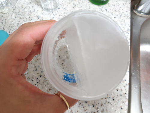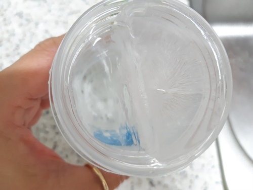 물을 얼릴때는 눕혀서 얼려야 합니다. 그럼 다 얼렸을때 이 상태가 됩니다. 사실 이게 키포인트예요.