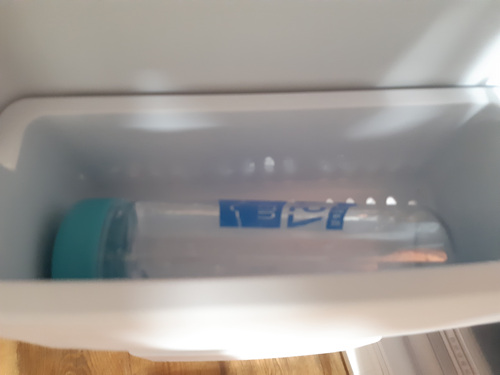 아침 출근 길 시원한 물병을 가지고 갈거라 꺼냈어요. 밤새 잘 얼었네요.
