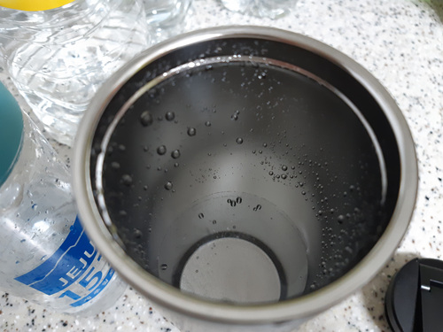 제일 먼저 물병을 준비해 주세요. 그다음 물을 열려 주는데요. 이때 물은 물병의 반만 채워 주시면 됩니다.