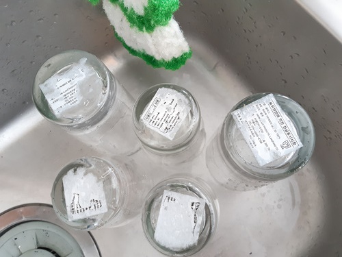 유리컵을 사용하려고 예전에 사 두었던 컵 박스를 꺼냈습니다. 그런데 오래 그냥 방치해서 그런지 컵 아래에 붙은 상표가 잘 떨어지지 않았습니다. 보통은 그냥 손톱으로 긁으면 잘 뜯기는 상표인데... 창고에 너무 오랫동안 방치한 듯~